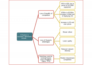 There would also be other costs from excluding Huawei. This includes the loss of its particular quality attributes, and additional switching costs for mobile networks that have to change vendors where Huawei has been a key supplier. The detriments are summarised in the figure below.