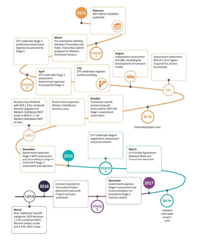 Figure 1 Chronology for the assessment of the West Gate Tunnel Market-led Proposal (click to open larger image)